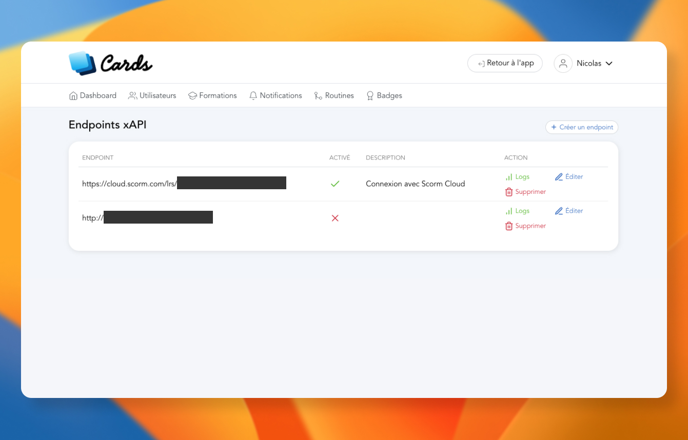 Avec l'intégration xAPI, Cards peut se connecter à vos LMS (Learning Management System) ou LRS (Learning Record Store) existants.