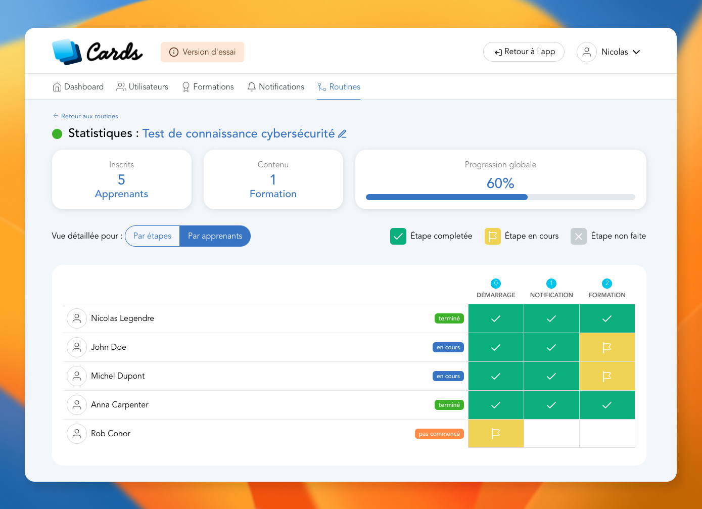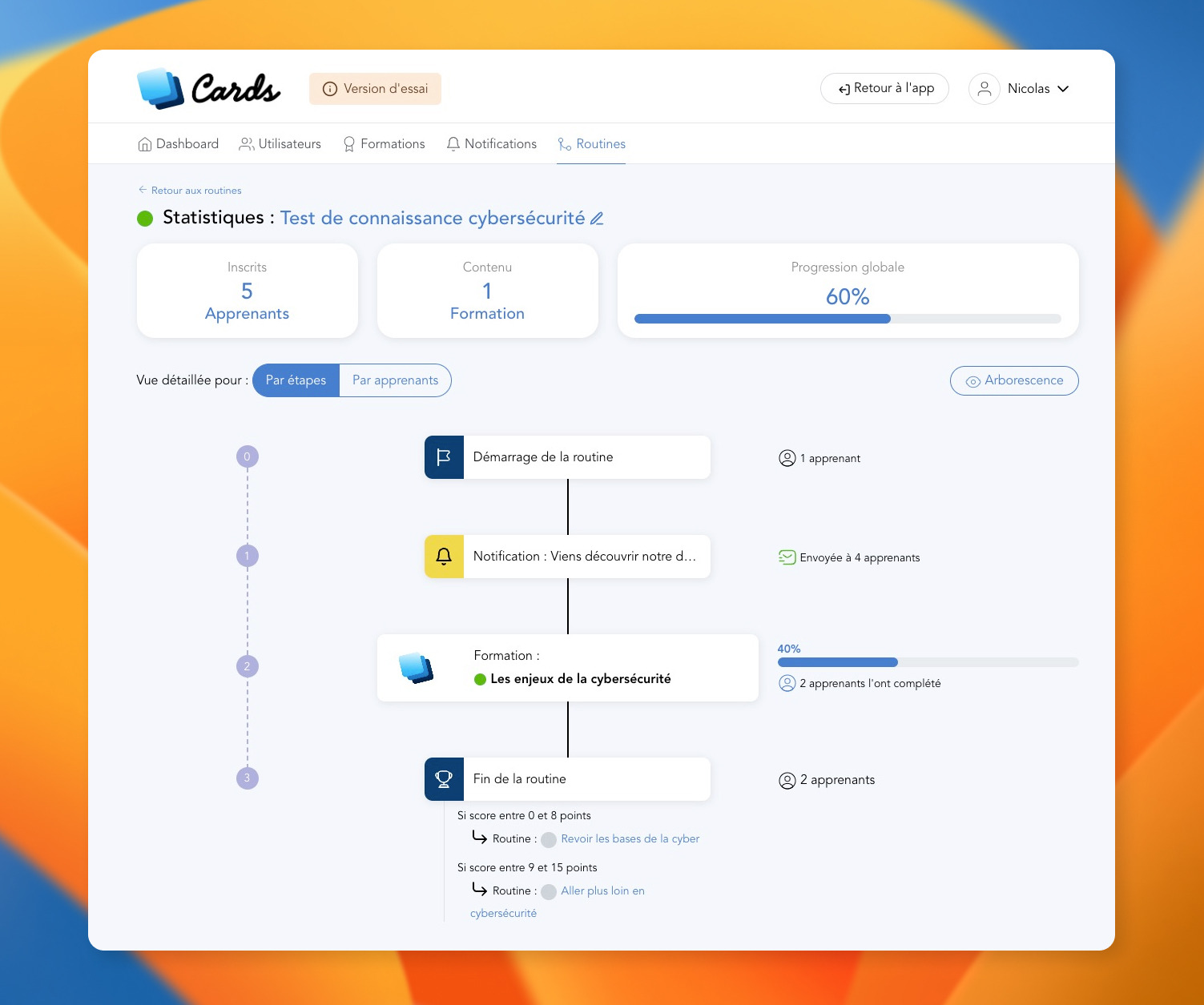The Learning Routines® offer statistics allowing you to have global and individual monitoring.