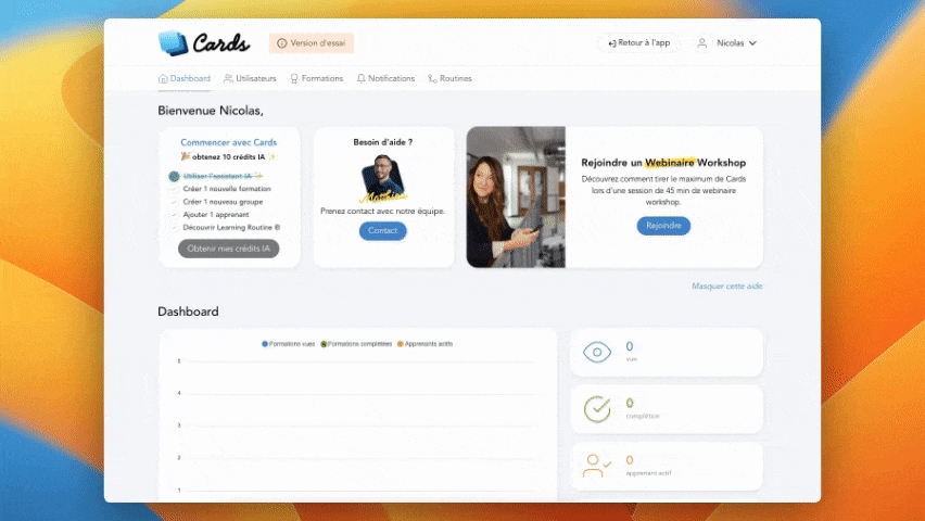 Language: This is the language of the Cards micro-learning interface (and not the language of the courses available). You can choose between French or English (for the moment only the French version is active).
